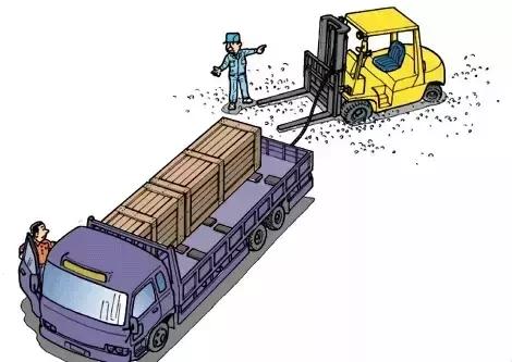 8、司机将叉车倒向卡车时,一垫板滑落,叉车倾覆。