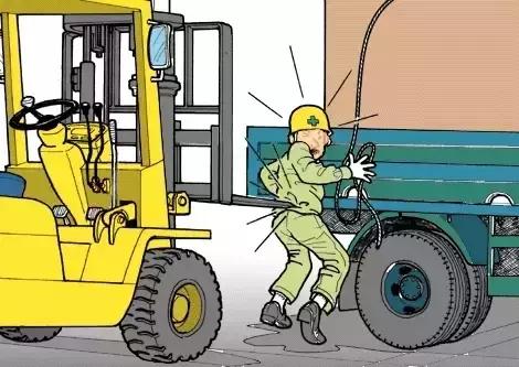 10、在卸货时,司机离开叉车座位,叉车迁移,将装卸工夹住。