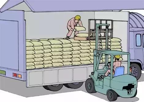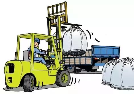 7、叉车司机用叉运两包吨袋装车,向后倒车时猛打了转向,叉车发生侧翻。