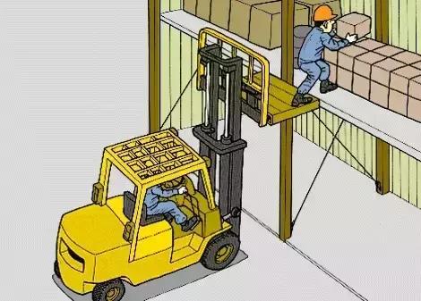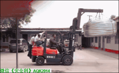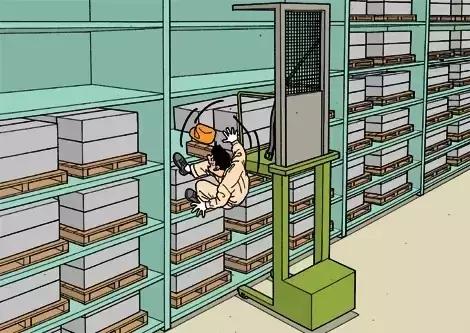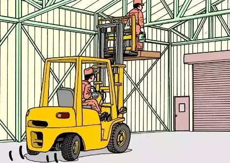11、一名工人站在多个托盘上利用叉车当梯子,发生倾覆。