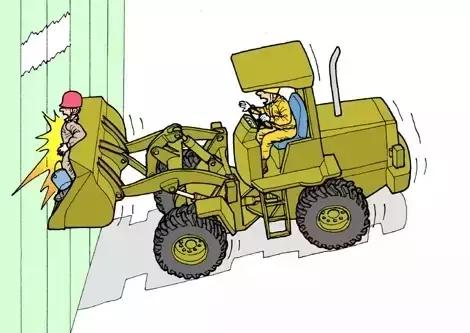 14、一名工人站在铲车上涂漆,司机松开了刹车,工人被夹伤。