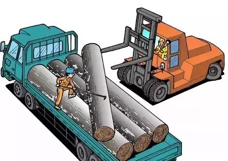 26、叉车在装原木时,将原木推下,将车上的工人砸死。