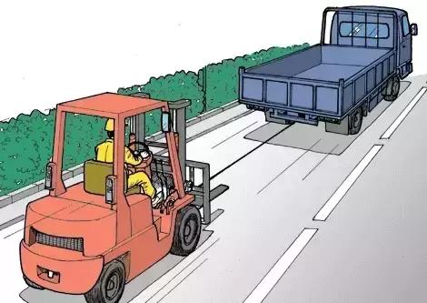 27、用卡车拖着叉车前行,刹车时,叉车为防止碰撞紧急转向,驾驶员被甩出致死。